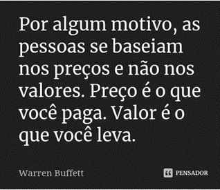 Para quem nunca investiu no mercado de capitais importa dizer que o preço, isoladamente, de uma ação não diz quase nada em relação ao valor efetivo do negócio em si, de modo que mesmo uma empresa de capital aberto cuja ação tenha um preço menor do que o de outra pode estar precificada muito acima do seu valor justo.