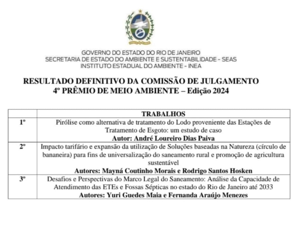O trabalho que levou os colegas ao pódio foi o artigo intitulado “Impacto tarifário e expansão da utilização de Soluções Baseadas na Natureza (círculo de bananeira) para fins de universalização do saneamento rural e promoção de agricultura sustentável”. O tema escolhido veio das experiências de ambos no assunto. Eles já atuaram como diretores do Comitê da Bacia Hidrográfica do Rio Guandu, que é o rio responsável pelo abastecimento de 9,6 milhões de pessoas na região metropolitana do Rio de Janeiro. Além disso, Mayná e Rodrigo foram, respectivamente, presidente e vice-presidente do Conselho Estadual de Recursos Hídricos (CERHI RJ) e também atuaram na Companhia Estadual de águas e esgotos do Rio de Janeiro.