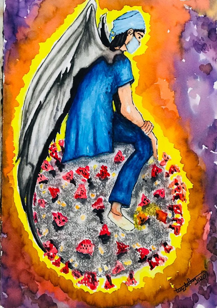 Esse mix deu origem à pintura em aquarela intitulada “Homenagem aos Profissionais de Saúde”, onde o artista reconhece a importância dessas pessoas, especialmente no atual contexto de crise sanitária vivida pelo Brasil e pelo mundo. Segundo ele, a arte o ajuda a manter a mente sadia neste momento de confinamento.