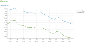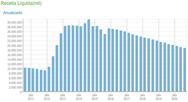 A Oi, para mencionar um exemplo prático (como demonstram os gráficos, extraídos do site Fundamentus), há anos tem sua receita, suas margens (bruta e operacional) e seus lucros reduzidos, representando um investimento com acentuado risco em relação a outros negócios disponíveis na Bolsa de Valores brasileira que, em sentido contrário, melhoram tais indicadores. É o barato que pode sair caro, embora se deva reconhecer o grande potencial de valorização das ações caso a empresa de telefonia consiga superar a condição de recuperação judicial ou seja adquirida por outra empresa.