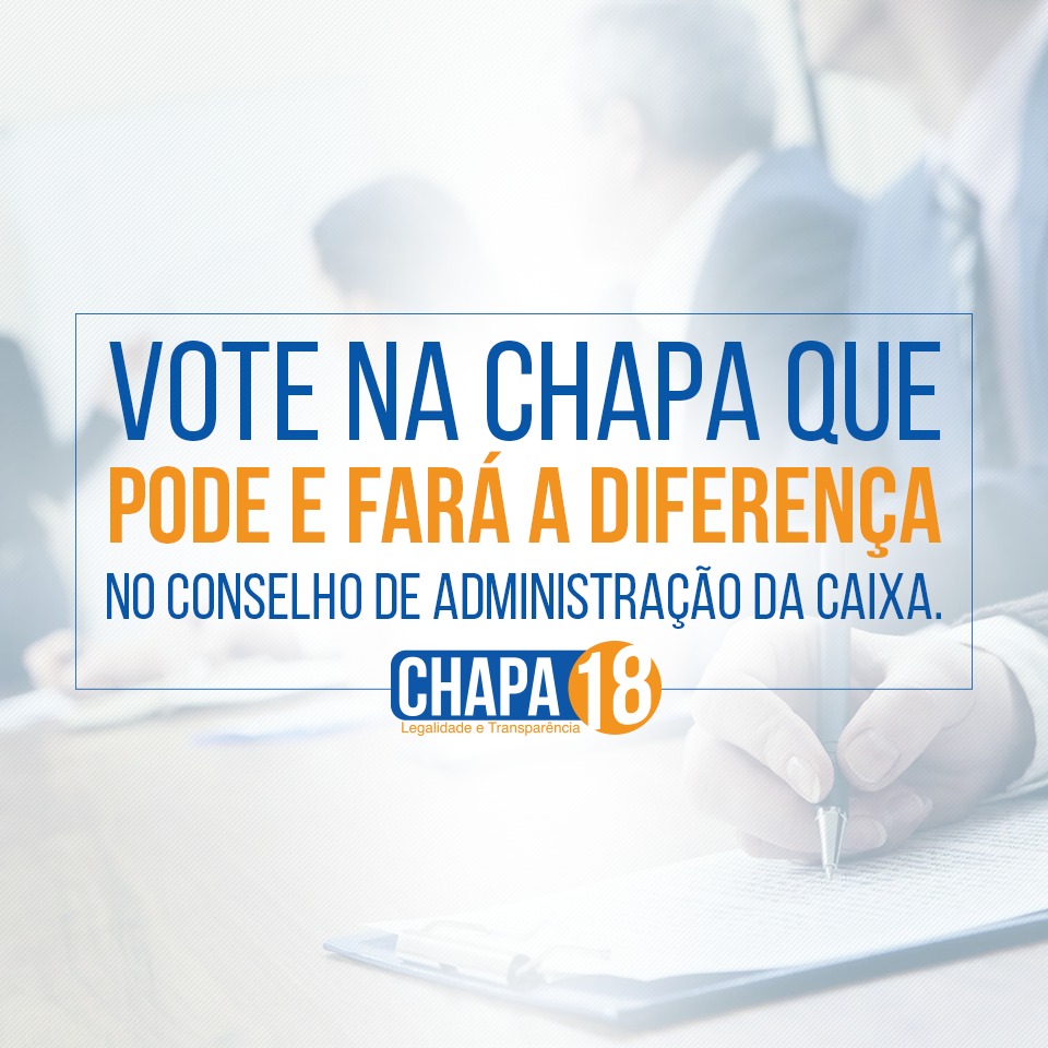 É muito importante que todos os associados não apenas votem na CHAPA 18 como também ajudem a divulgar a nossa chapa junto a todos os demais colegas da empresa.