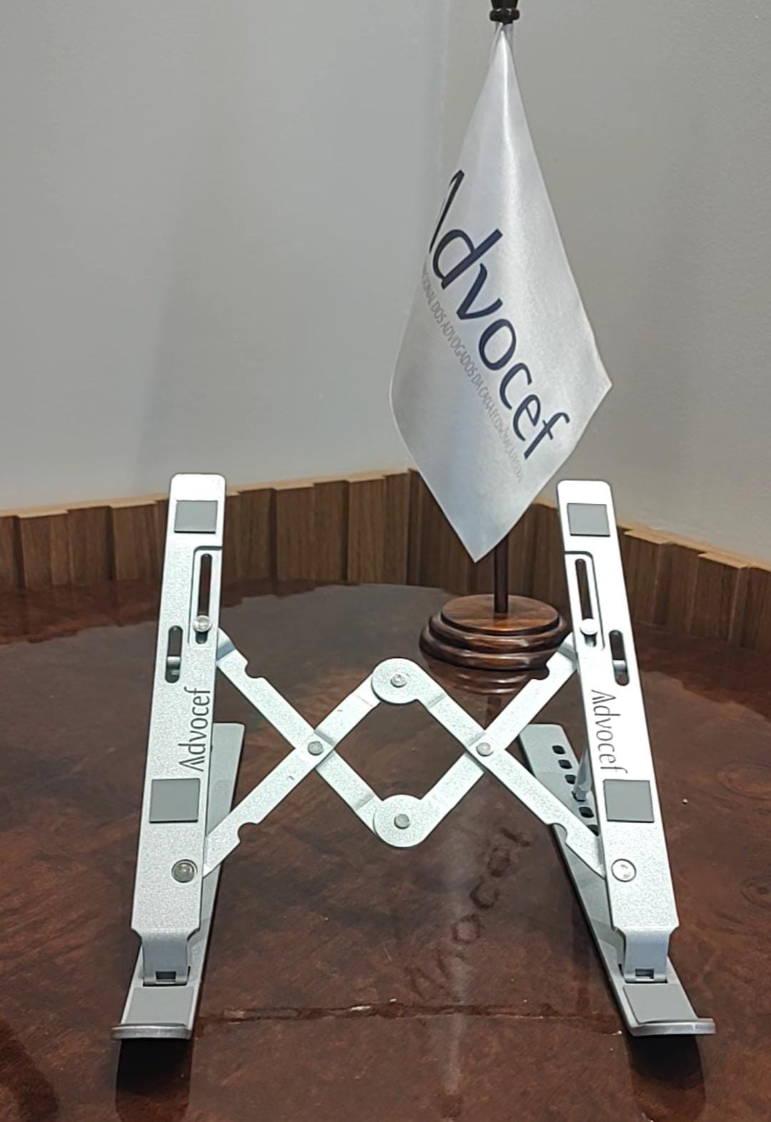 Como forma de marcar o Dia do Advogado e agradecer pelo empenho e dedicação de todos, a Advocef oferece um lindo suporte para notebook em metal. Com design ajustável em diversos níveis, o item garante ergonomia e praticidade ao seu dia a dia, pois pode ser levado para qualquer lugar sem ocupar espaço!