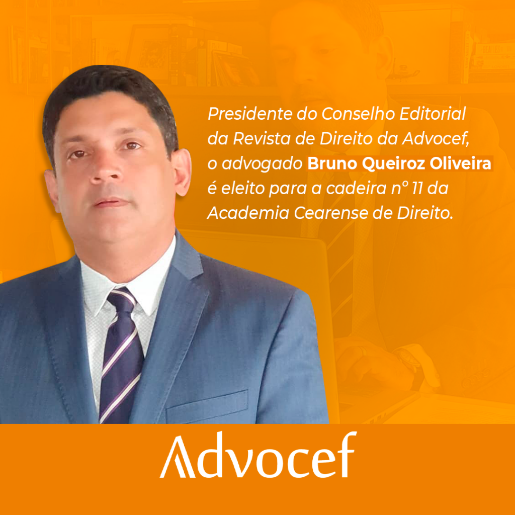 A Associação Nacional dos Advogados da Caixa Econômica Federal (Advocef) cumprimenta o presidente do Conselho Editorial da Revista de Direito, Bruno Queiroz Oliveira, pela eleição como acadêmico efetivo da Academia Cearense de Direito (Aced). O associado ocupará a cadeira nº 11 da instituição, cujo patrono é o jurista Manoel Lourenço dos Santos.