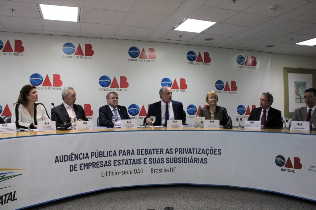 A audiência pública sobre privatizações de empresas estatais e suas subsidiárias lotou o salão nobre do Conselho Federal da OAB, nesta terça-feira (27). O evento promovido pela Comissão Especial de Advocacia em Estatais (CEAE), da Ordem, trouxe o ex-ministro Ciro Gomes, e a ex-senadora Ana Amélia Lemos, ambos candidatos na eleição presidencial em 2018, para debater o tema sob diferentes perspectivas.