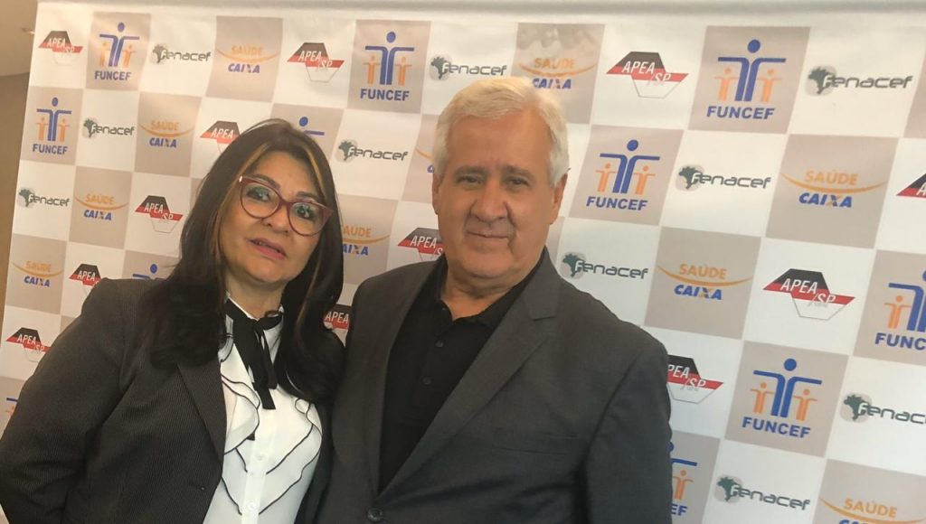 Presidente da APEA/SP, Maria Lúcia Cavalcante Dejavite ao lado do presidente da Comissão Funcef, Fábio Romero
