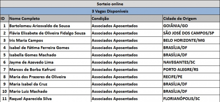 Confira a lista dos aposentados que participaram do sorteio: