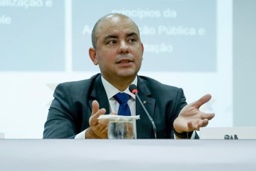 O diretor Jurídico da CAIXA, Gryecos Loureiro, iniciou o primeiro bloco de palestras avocando a particularidade da atuação jurídica da sua empresa enquanto ressaltou a necessidade de ingresso real das estatais no processo de avanço tecnológico.