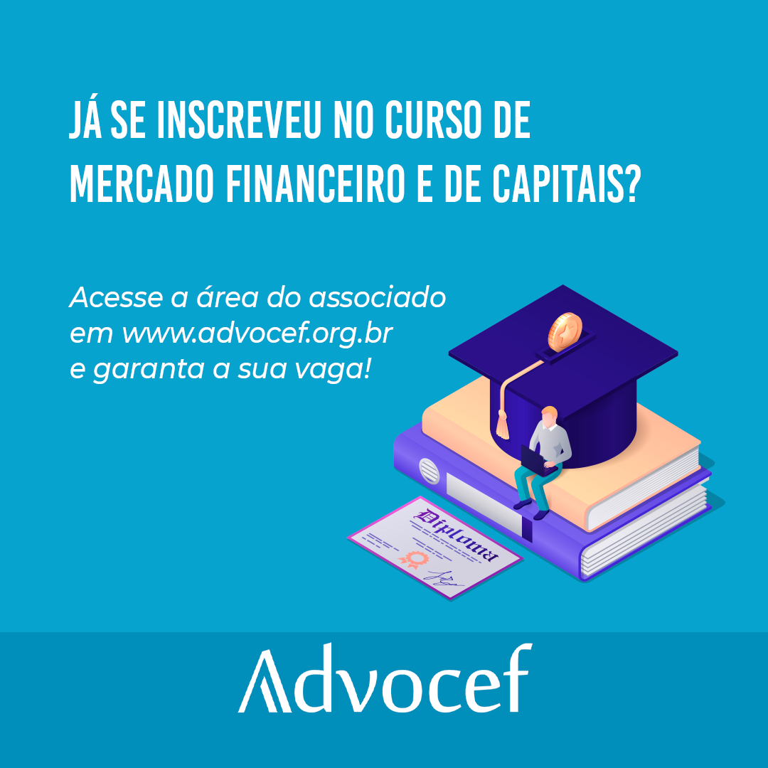 A Diretoria Executiva da Associação Nacional dos Advogados da Caixa Econômica Federal (Advocef) decidiu homenagear os associados presenteando-os com a possibilidade de indicarem o companheiro/cônjuge ou um dependente para participar do curso sobre Mercado Financeiro e de Capitais, com direito ao certificado, observada a frequência mínima estabelecida.