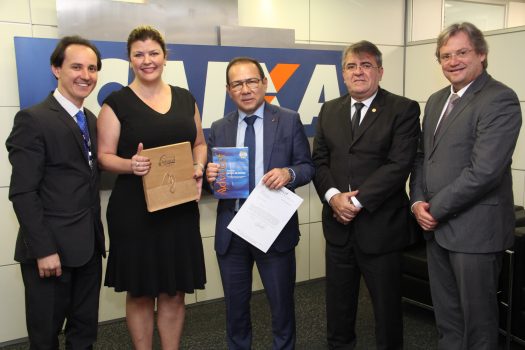 Nessa quarta feira(13), a Presidente Anna Claudia de Vasconcellos, acompanhada do Diretor de Relacionamento Institucional Carlos Castro, foram recebidos pelo Presidente da Caixa Nelson Antônio de Souza.