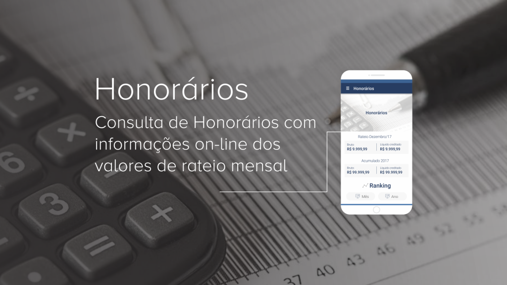 Portanto, baixe o aplicativo agora mesmo e acompanhe o rateio e crédito mensal dos honorários na sua conta em tempo real!