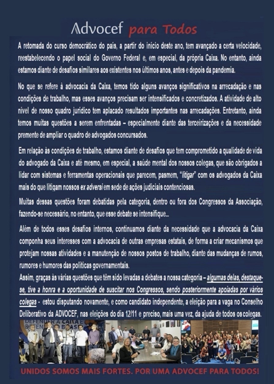Neste ano, como forma de celebrar a data e agradecer pelo empenho e dedicação de todos, a Advocef preparou um presente especial: um power bank de 10.000mAh multifuncional, com suporte retrátil para celular ou tablet, indicadores LED de bateria, base antiderrapante e cabos integrados dos tipos Tipo-C, Lightning, V8 e USB, além de acompanhar um cabo USB V8 e um adaptador Lightning. Tudo isso para garantir mais mobilidade e conveniência no seu dia.