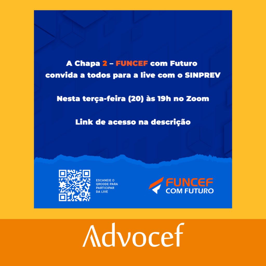 Em mais uma live antes das eleições, a Chapa 2 – FUNCEF com Futuro vai responder as perguntas dos participantes e assistidos que são associados do Sindicato Nacional dos Participantes das Entidades Fechadas de Previdência Complementar (SINPREV). O evento ocorrerá nesta terça-feira (20), às 19h, e será transmitido via ZOOM.
