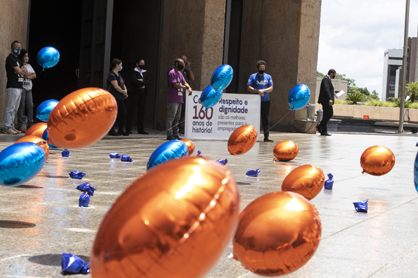 O edifício-sede da Matriz I da CAIXA amanheceu, na terça-feira (12), repleto de balões com as cores do banco público num ato para comemorar os 160 anos da estatal, chamar atenção aos empregados, que foram essenciais para o enfrentamento da crise causada pelo novo coronavírus.