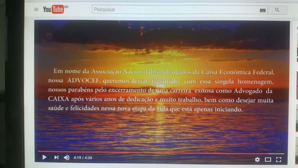 Seguem abaixo os dois vídeos em homenagem aos 45 Advogados da CAIXA que se desligaram da empresa no último plano de demissão voluntária (PDVE), os quais foram apresentados durante a solenidade de abertura do Congresso de Maceió, em 25 de maio de 2017.