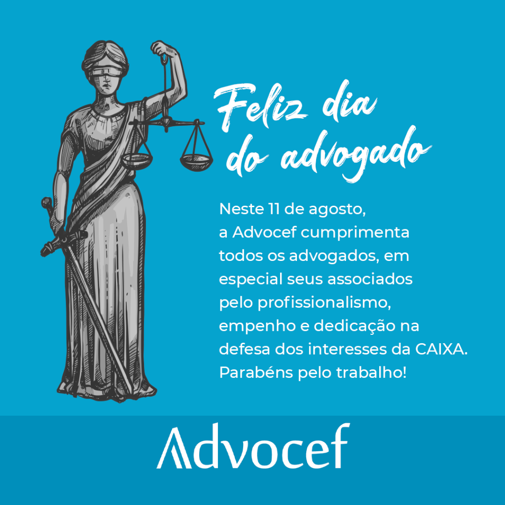 A Associação Nacional dos Advogados da Caixa Econômica Federal (Advocef) parabeniza seus associados pelo Dia do Advogado e agradece o empenho, o profissionalismo e a dedicação de todos na defesa dos interesses da empresa. É um grande orgulho representar cada um dos advogados e advogadas associados!