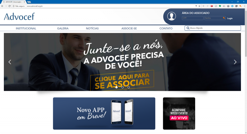 O endereço na web foi mantido, www.advocef.org.br, todavia realizamos uma reestruturação completa para integrar o novo site com a nossa intranet, além de facilitar o acesso a todos os conteúdos e dados financeiros dos associados.