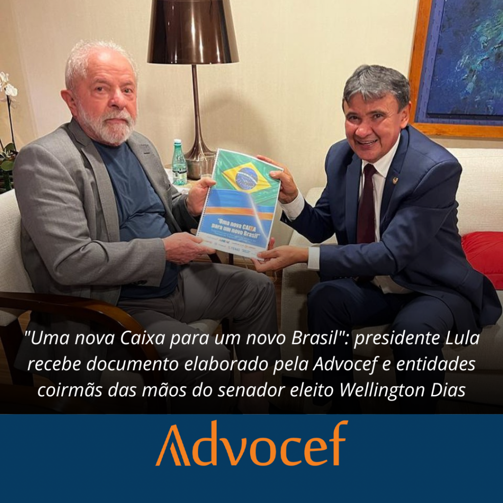 Conforme prometido, o senador eleito Wellington Dias (PT-PI) entregou ao presidente Lula, o documento elaborado em conjunto pela Advocef, e as demais entidades coirmãs: Fenag, Fenae, Aneac, AudiCaixa, Social Caixa, Contraf, Contec e Rita Serrano.