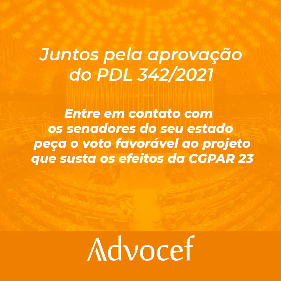 A mobilização da Associação Nacional dos Advogados da Caixa Econômica Federal (Advocef), das demais entidades representativas e dos empregados estatais, garantiu a aprovação do projeto que susta os efeitos da Resolução 23 da Comissão Interministerial de Governança Corporativa e de Administração de Participações Societárias da União (CGPAR), na quarta-feira (1).